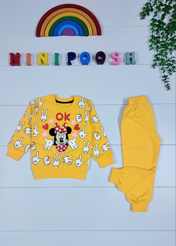 بلوز شلوار دو طرف چاپ طرح میکی موس
