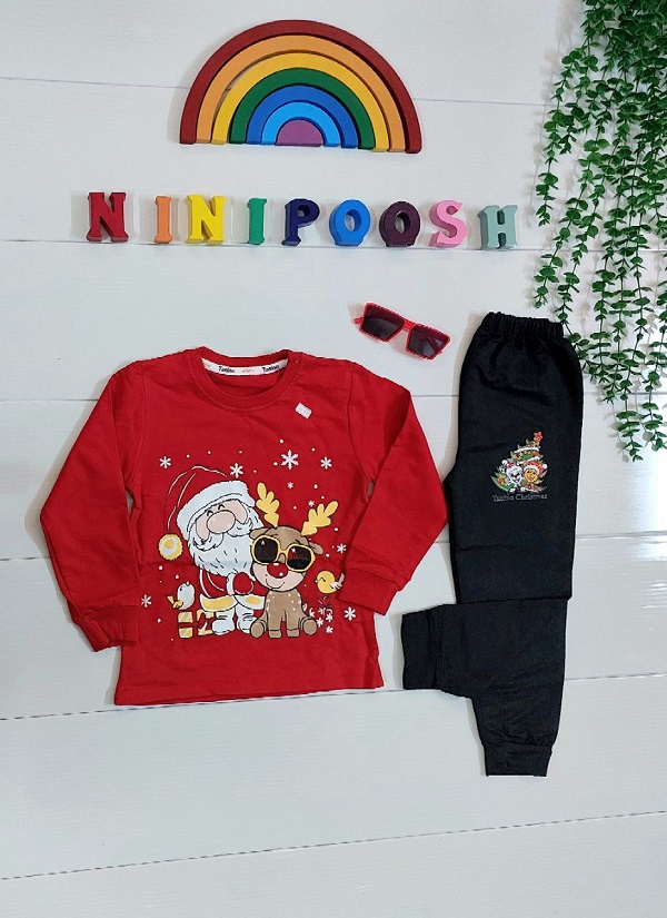 بلوز شلوار طرح بابانوئل و گوزن عینکی