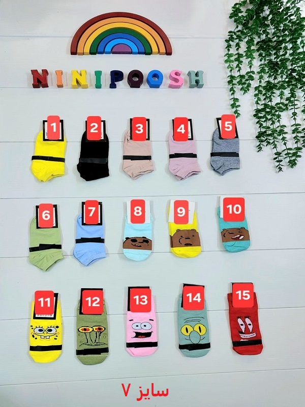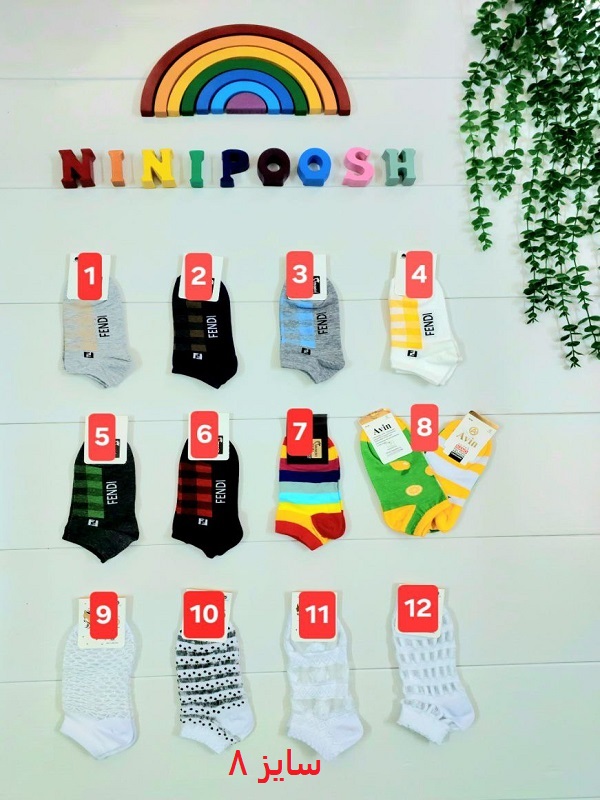 جوراب بچگانه در طرح ها و رنگ های متنوع سایز 7و 8
