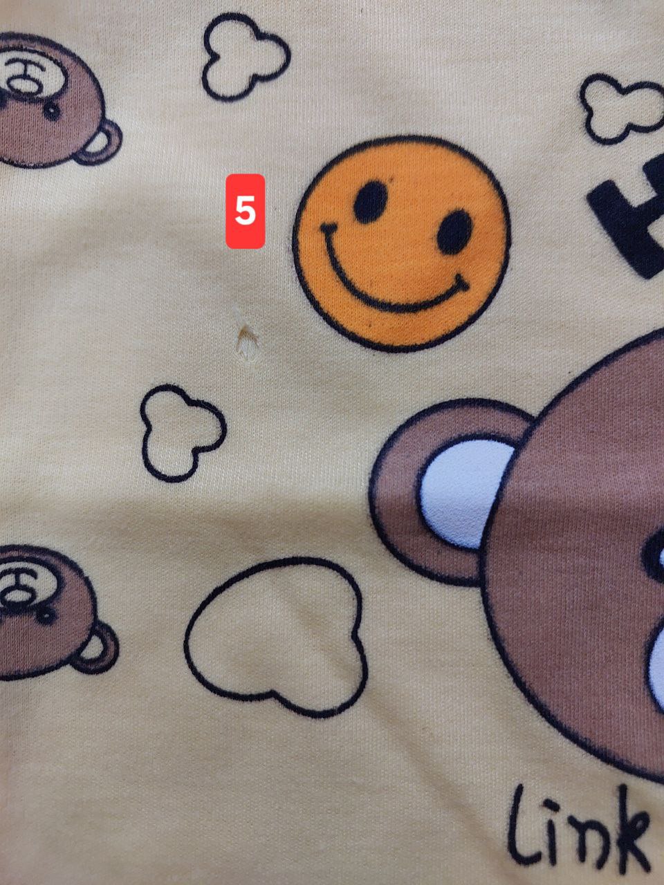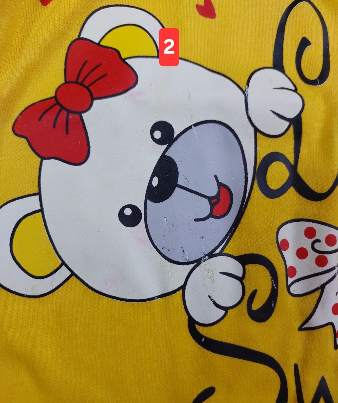 ✅ ۲- بلوز شلوار خرس پاپیون دار سایز ۴ یا ۳۰ رنگ زرد (چاپ لباس ایرادداره،شلوار سالم هست)