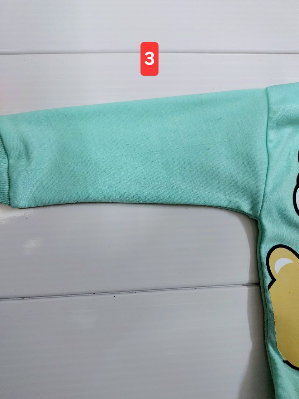 ✅ ۳- بلوز شلوار خرس های بامزه سایز ۵ یا ۳۵ رنگ سبز (یکی از آستین ها نخ کشی دارد، شلوار سالم هست)
