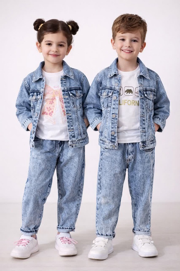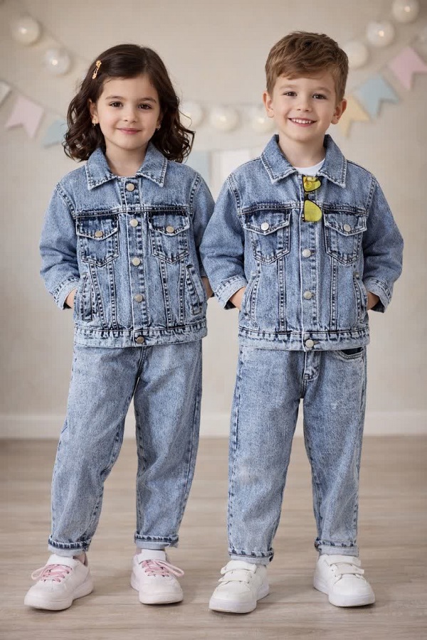 ست دو تیکه کت و شلوار جین بچگانه سایز45تا65