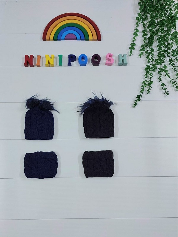 ست دو تیکه کلاه داخل خز پوم دار، شال رینگی داخل خز