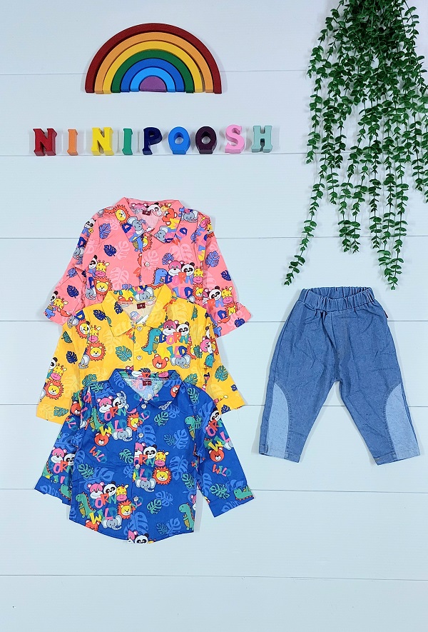 پیراهن و شلوار جین وارداتی طرح حیوانات