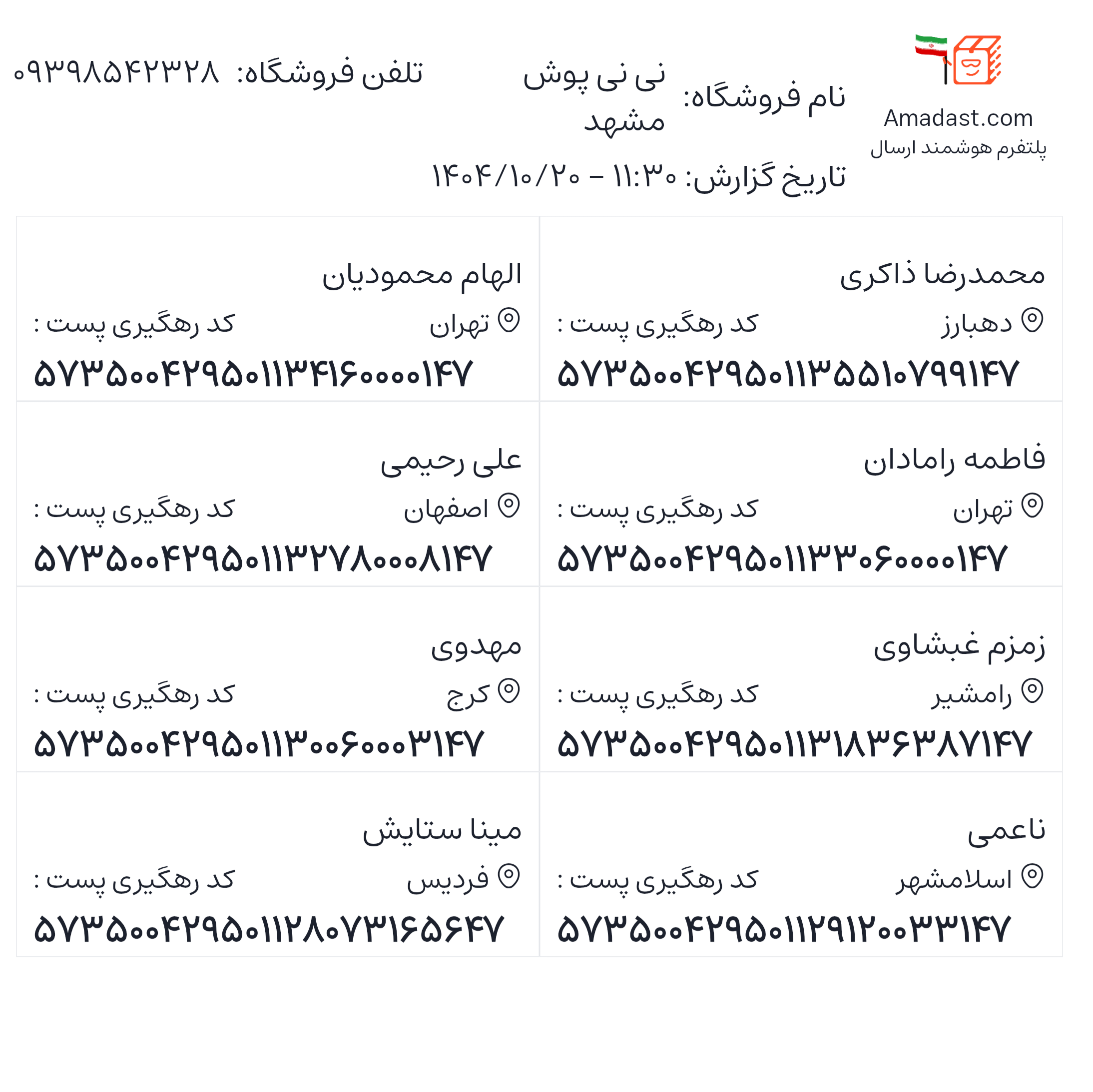 جهت مشاهده کد رهگیری های 7 بهمن ماه 1404 کلیک نمایید