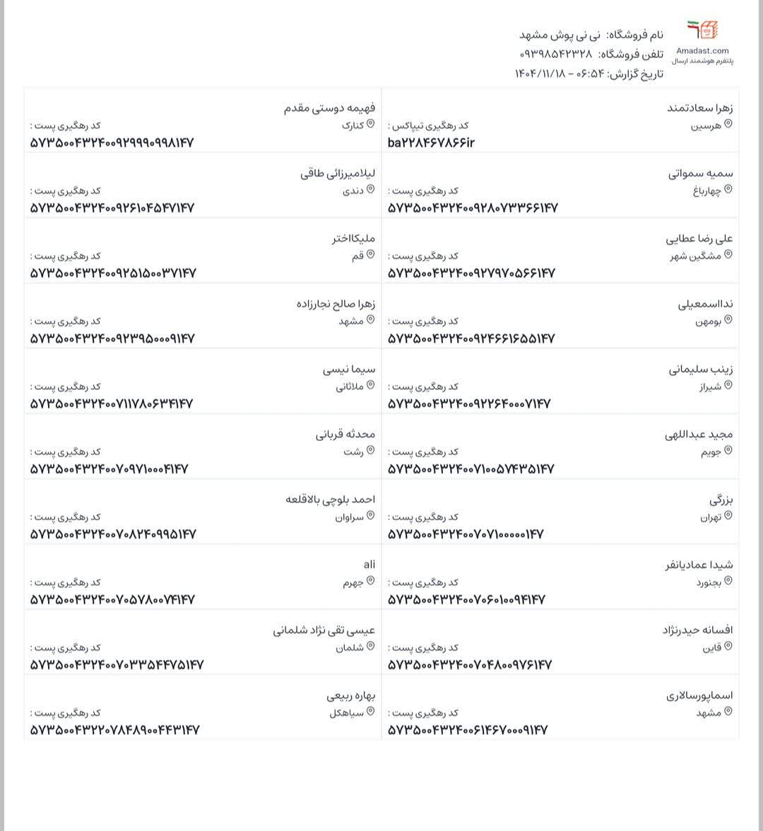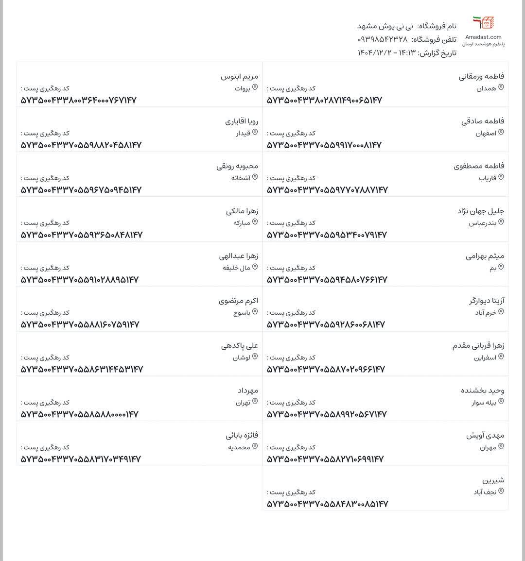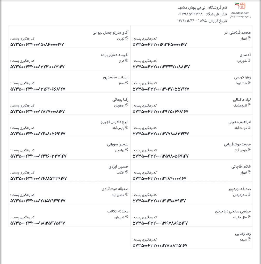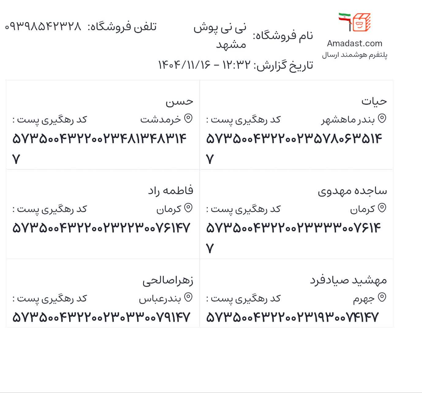 جهت مشاهده کد رهگیری های 16 بهمن ماه 1404 کلیک نمایید