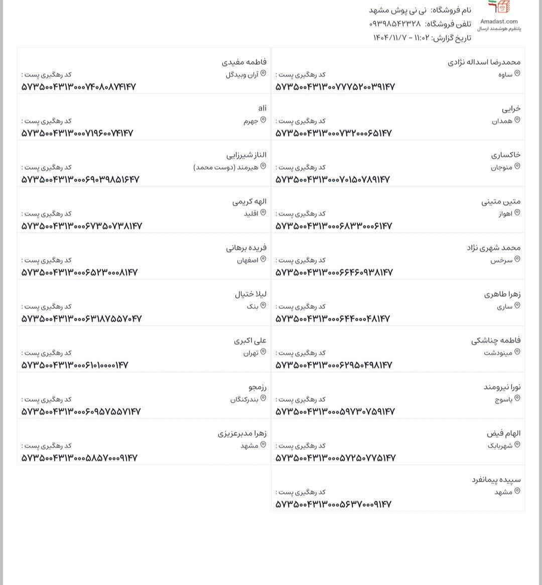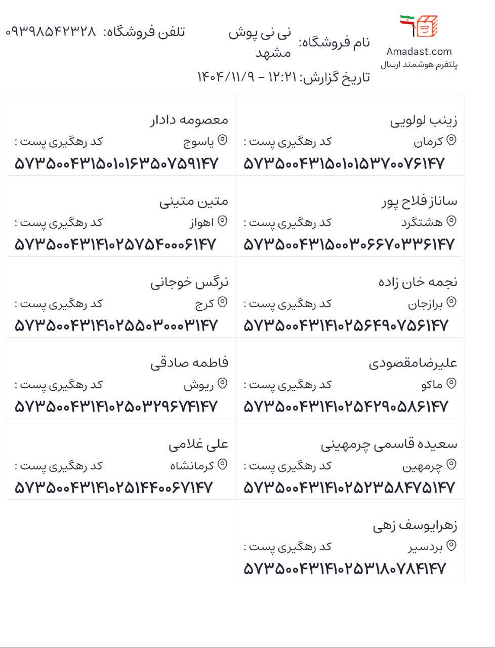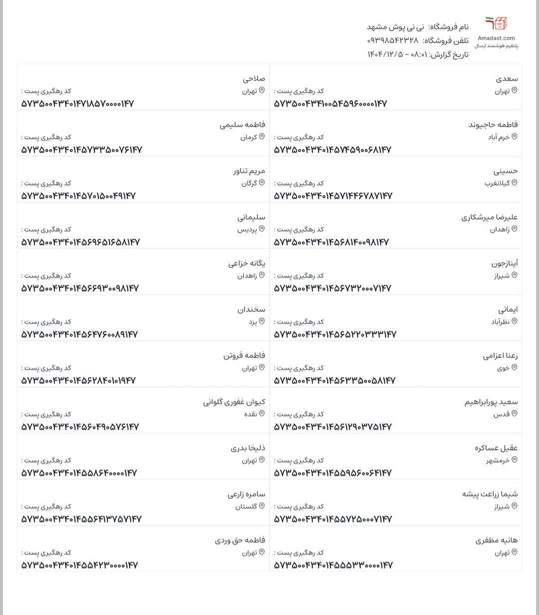 جهت مشاهده کد رهگیری های 16 بهمن ماه 1404 کلیک نمایید