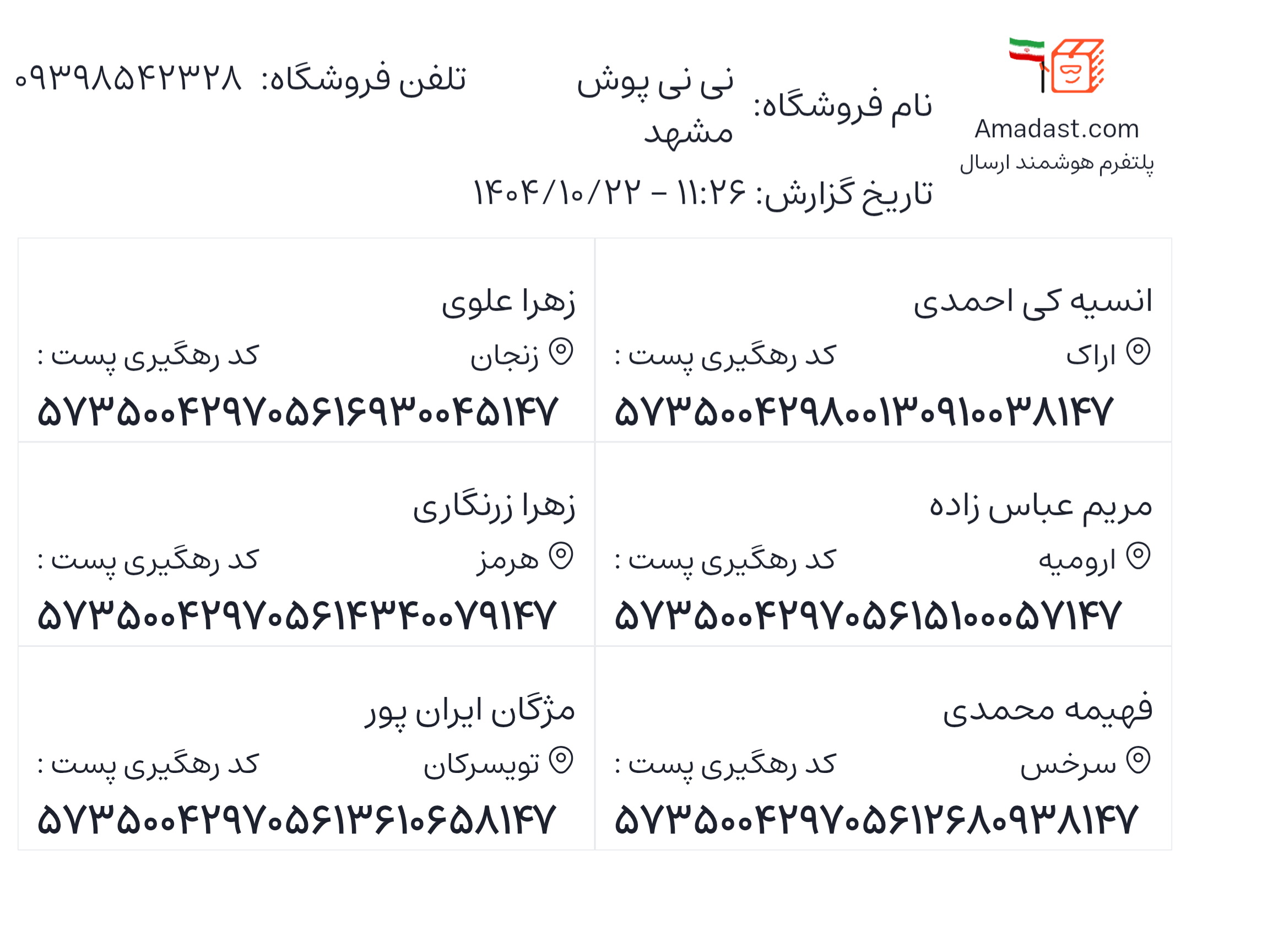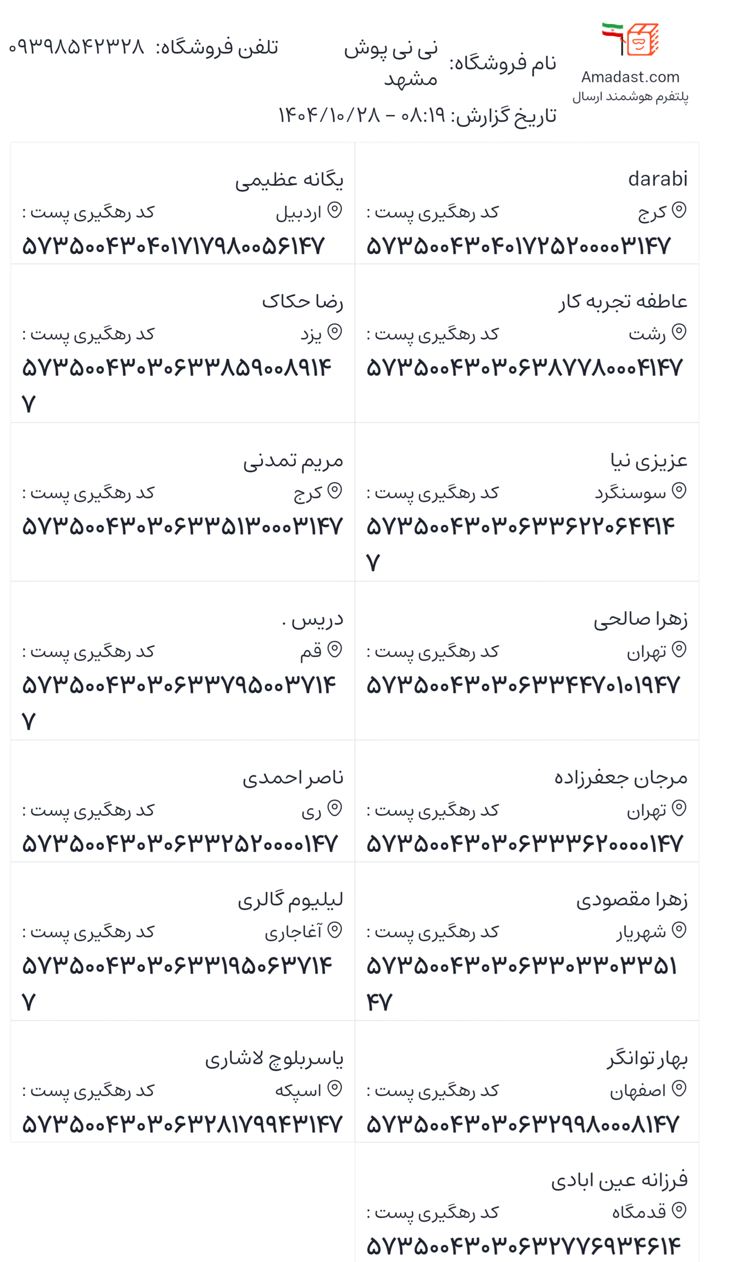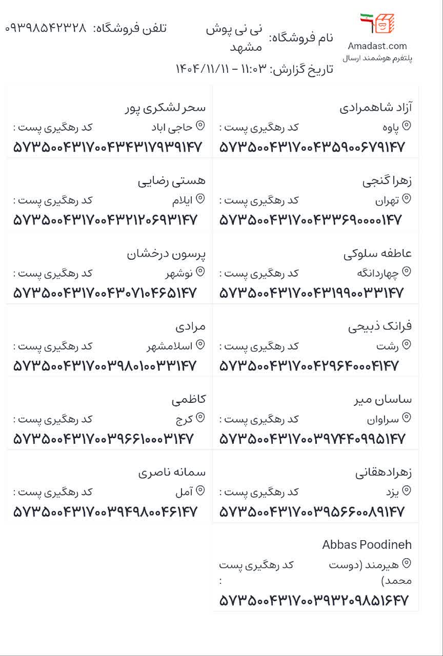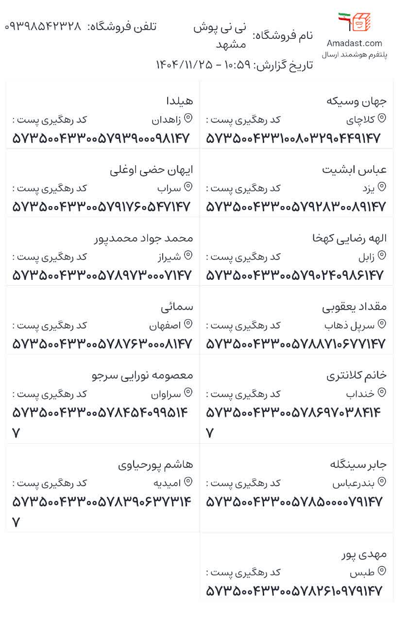 جهت مشاهده کد رهگیری های 16 بهمن ماه 1404 کلیک نمایید