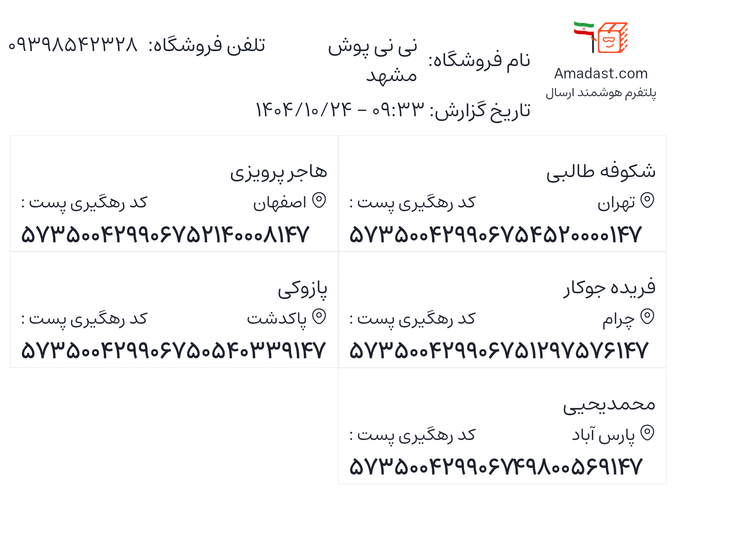 جهت مشاهده کد رهگیری های 5 بهمن ماه 1404 کلیک نمایید